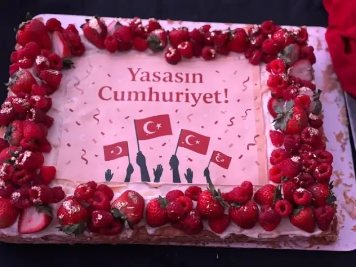 Gecenin en özel anı, TADF Başkanı Gülay Aydemir ile Gülben Ergen’in birlikte kestikleri Cumhuriyet pastası oldu. Wildbayberry Cake tarafından özel olarak hazırlanan pasta, marşlar ve alkışlar eşliğinde salonda büyük bir coşku yarattı. Türk bayrakları dalgalanırken, Cumhuriyet’in ışıltısı tüm salona yayıldı. Basın mensupları, organizasyon ekibi ve tüm misafirlerin emeğiyle, Cumhuriyetimizin 102. yılına yakışan bir gece yaşandı. Türk Amerikan toplumu, birlik ve gurur içinde, Cumhuriyet’in ışığında bir kez daha kenetlendi.
