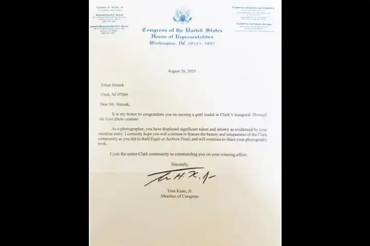 Wildlife Photo Contest… Yani vahşi doğa temalı yarışma. Fotoğrafın New Jersey eyaleti içinde çekilmiş olması şartı vardı ve fotoğrafla edit yapılmaması gerekiyordu. Yani yarışmacılardan ham bir fotoğraf isteniyordu. Yarışmaya katıldıktan 6 ay sonra Washington’dan, Amerika Birleşik Devletleri Kongresi’nden tebrik mektubu aldım; Kongre Üyesi Tom Kean Jr. tarafından imzalıydı. Amerikan kartalı fotoğrafımın yarışmada birinci olduğu; altın madalya ve para ödülümün yerel belediye başkanımız tarafından bana tören ile takdim edileceği yazıyordu. Gerçekten çok mutlu olmuştum o an. Bir hafta sonra belediye başkanımız Angel Albanese beni aradı, tebrik etti. Ödül töreniyle ilgili günü kararlaştırdık ve sonrasında ödülümü tören salonunda bana takdim etti.